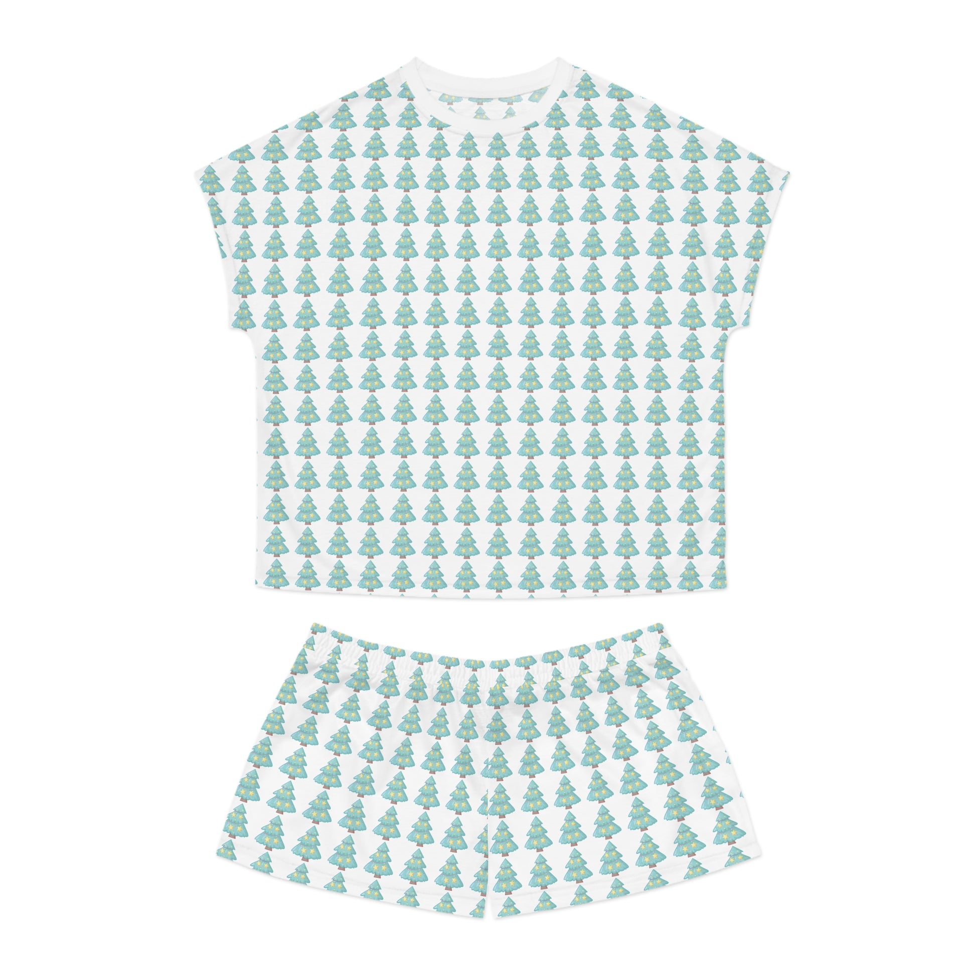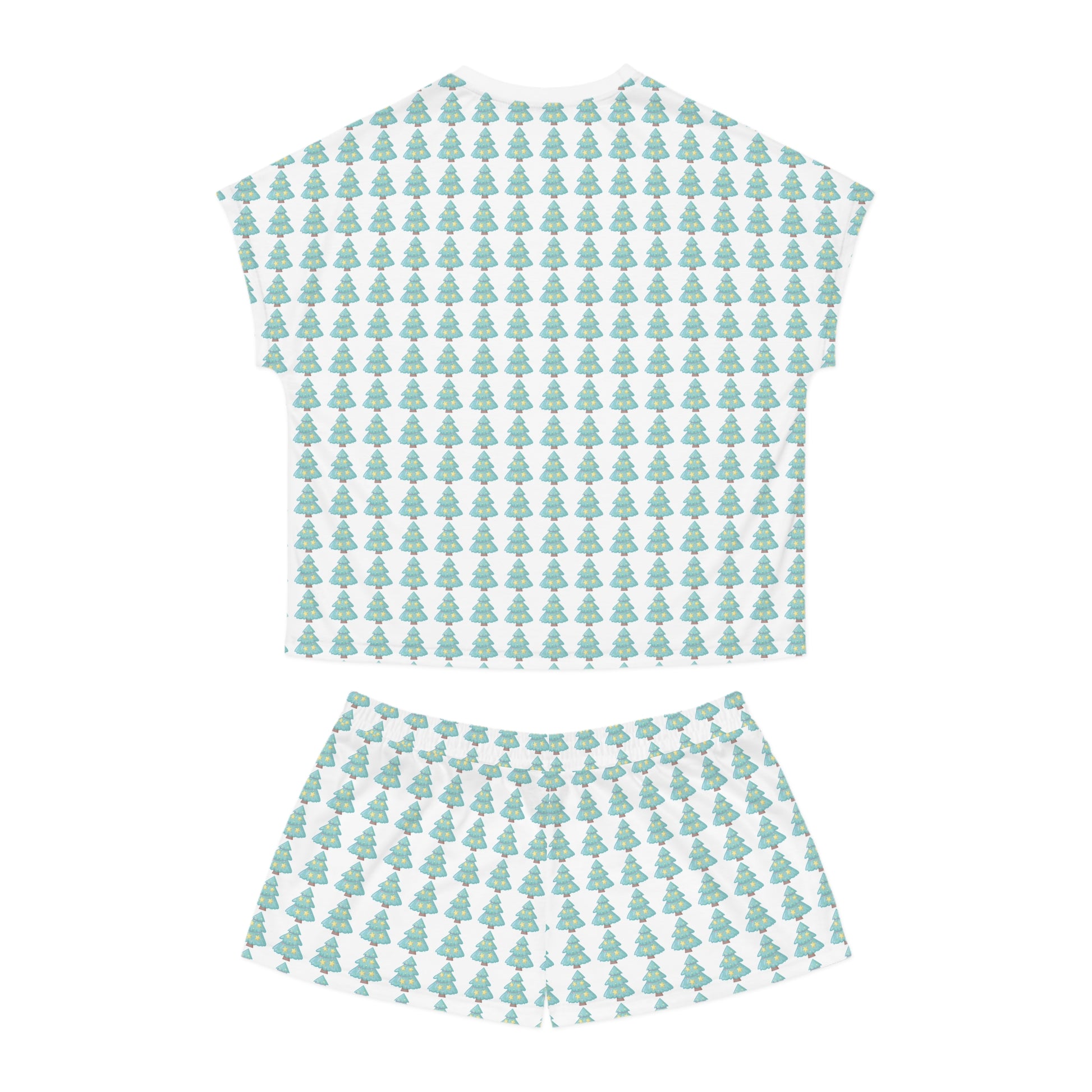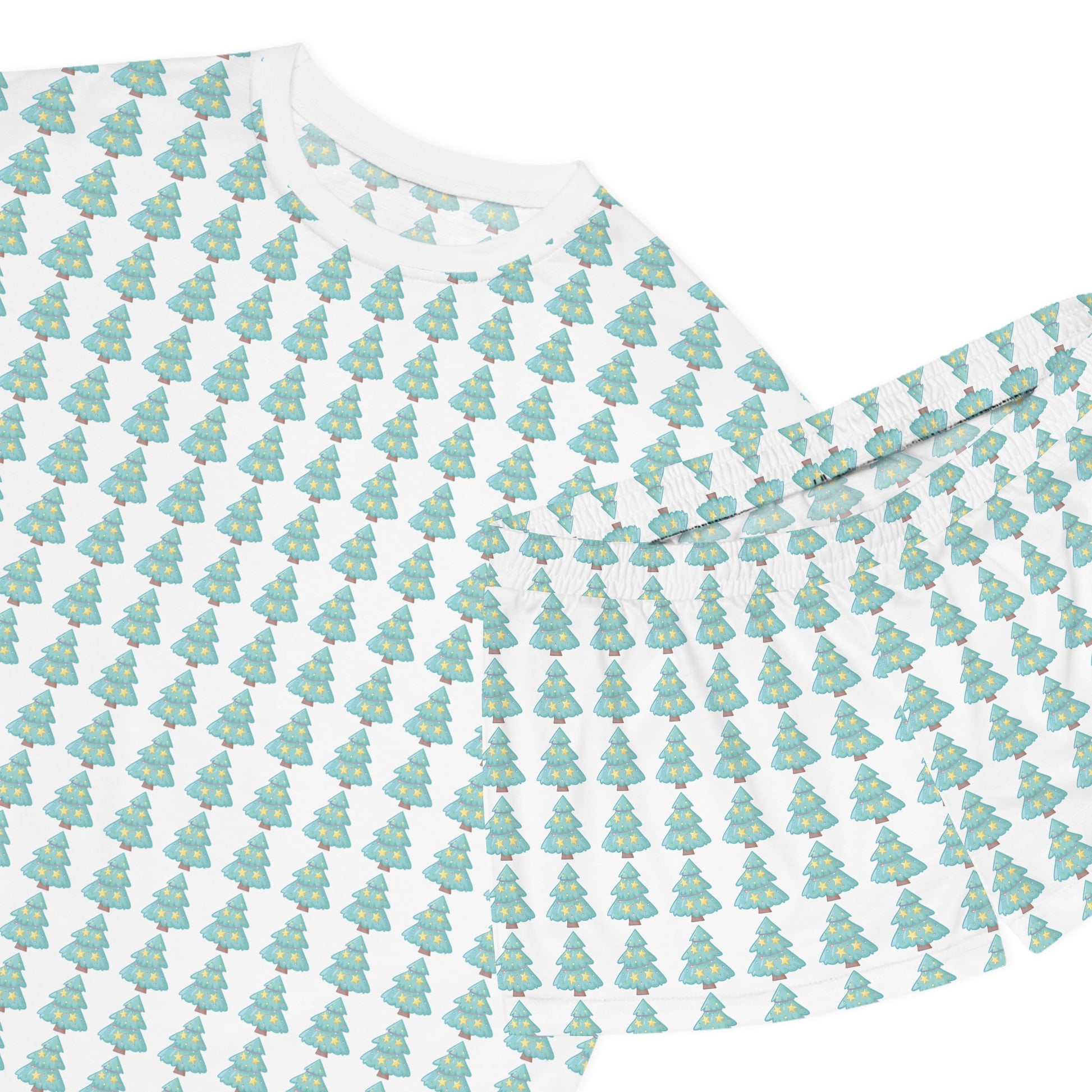 Featuring a relaxed-fit tee and comfy drawstring shorts, each piece is printed with delicate pastel Christmas trees that shimmer with subtle glam. Crafted from a lightweight, breathable polyester blend, itβs perfect for holiday movie marathons, cocoa nights, and festive morning selfies.